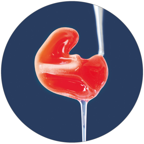 Der Werkstoff ermöglicht die Herstellung von hochwertigen weichen Otoplastiken, Gehör- und Schwimmschutzotoplastiken.